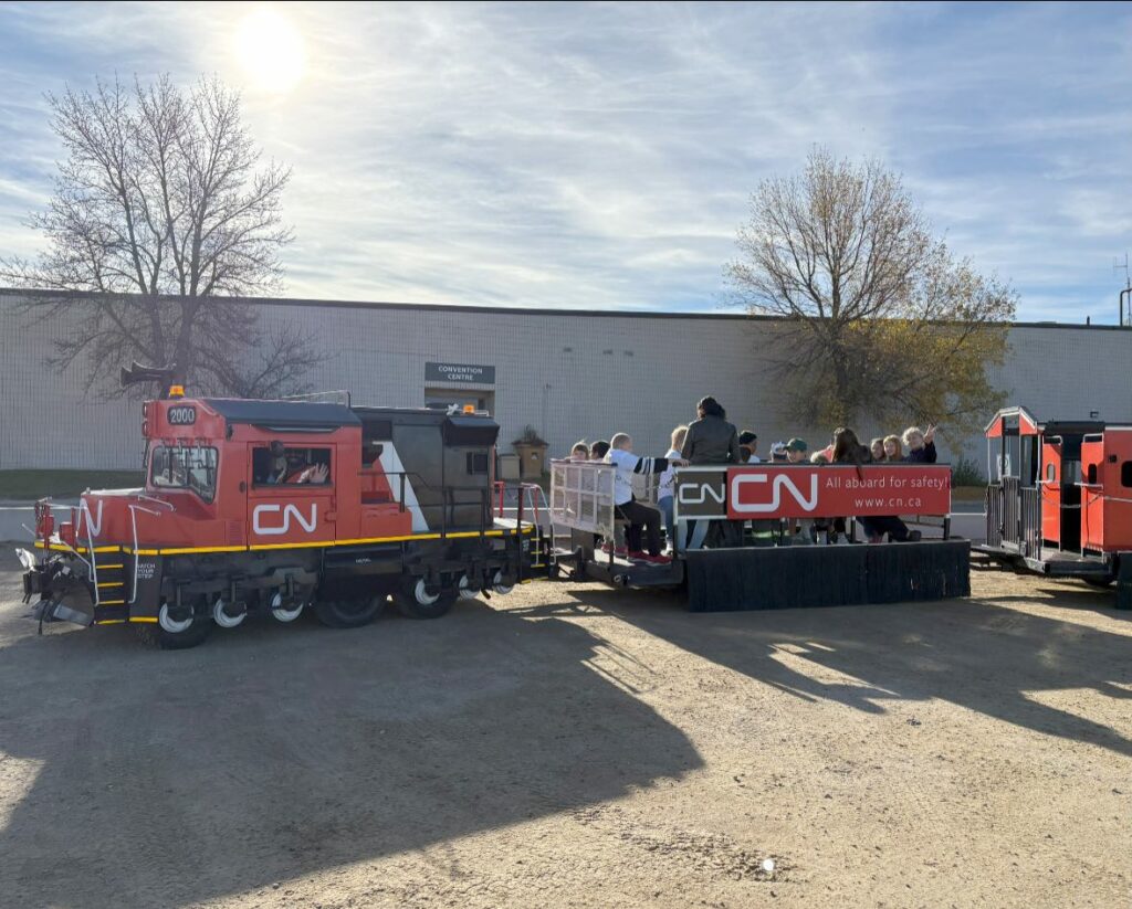 CN Rail joined us to discuss rail safety and provide rides on Little Obie, which was a huge hit with the students!